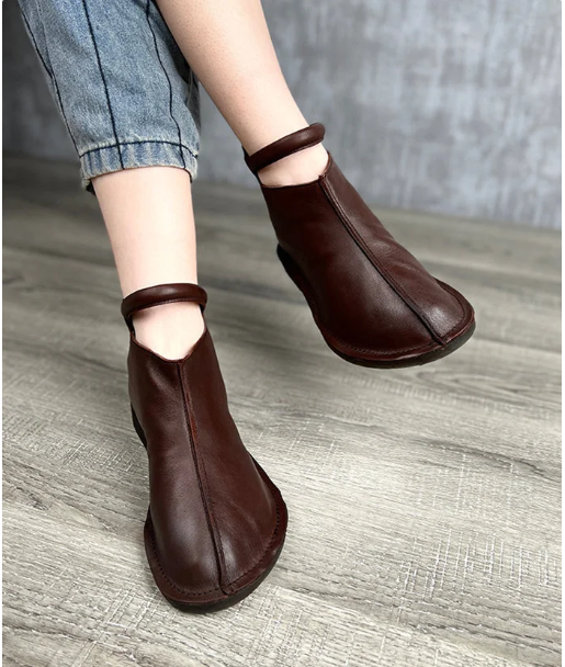 حذاء كاحل جديد من جلد البقر بلون القهوة مع سحاب،