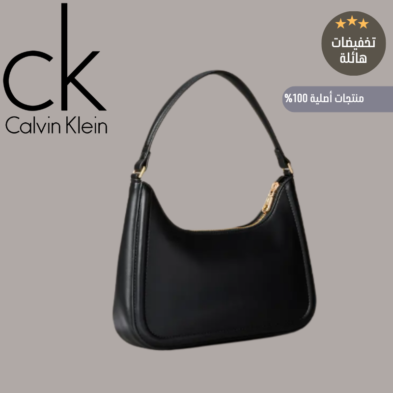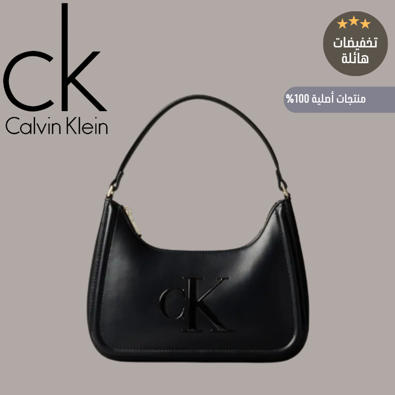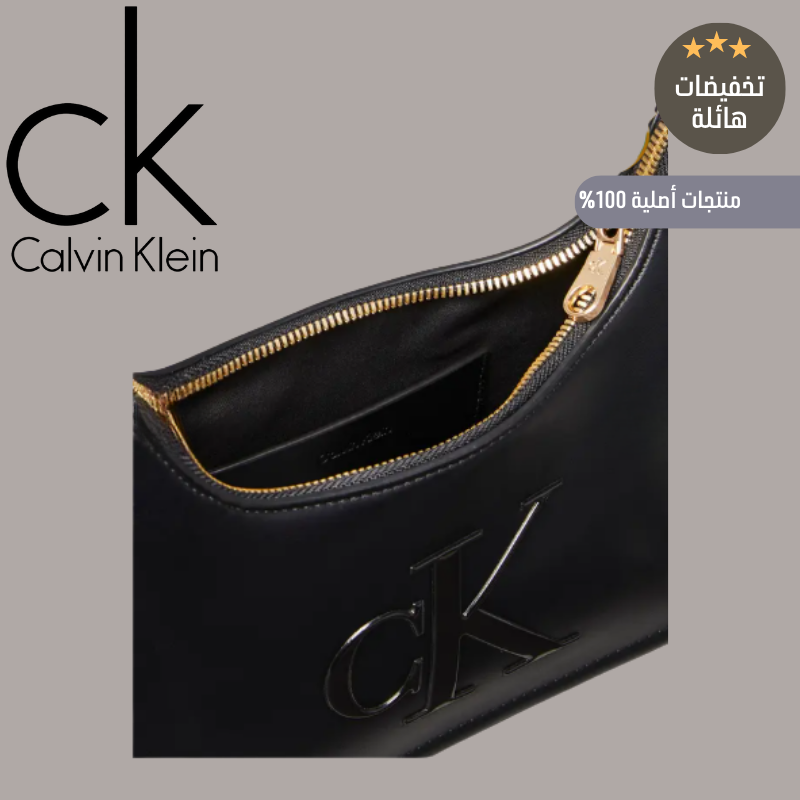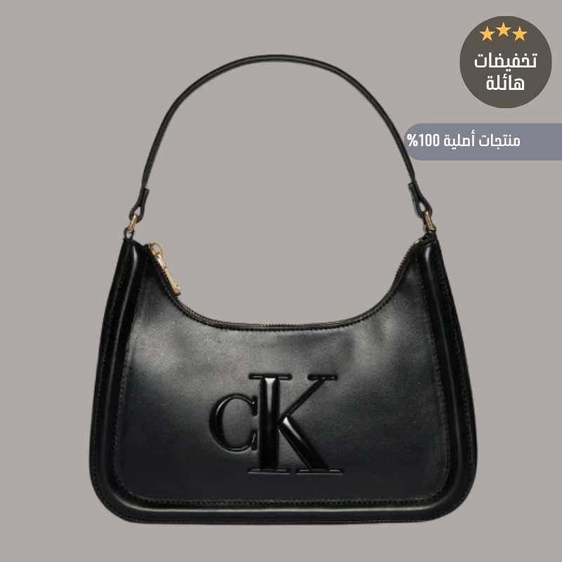 حقيبة كتف نسائية من كالفن كلاين باللون الأسود بشعار منقوش بارز