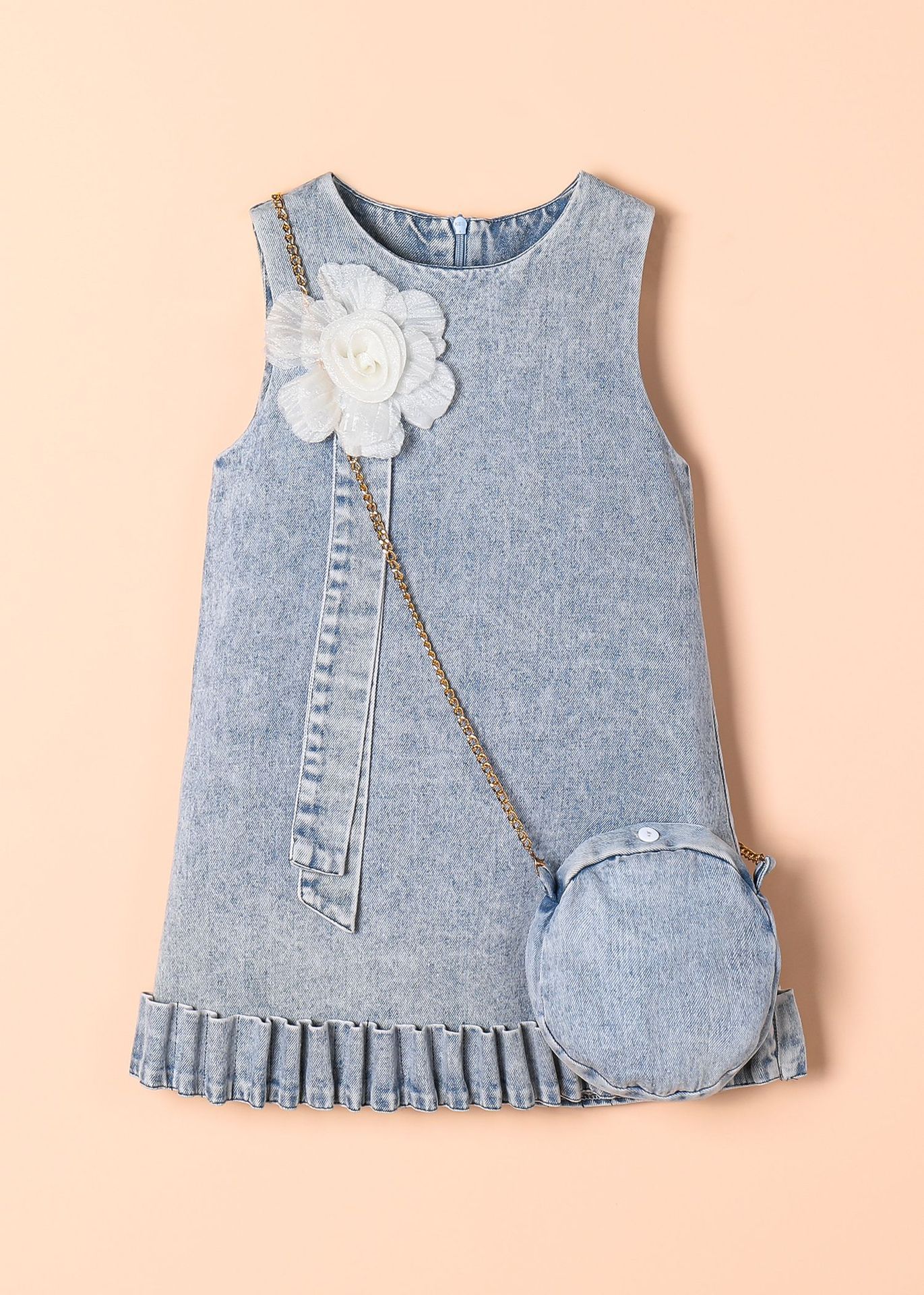 فستان جينز ثلاثي الأبعاد بدون أكمام للفتيات