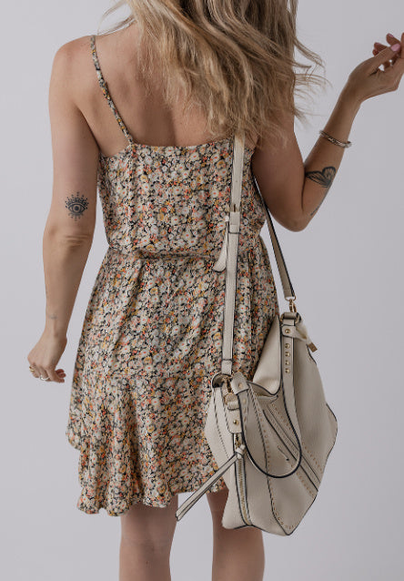 فستان صيفي واسع من قماش الكاكي بوهو مطبوع عليه أزهار