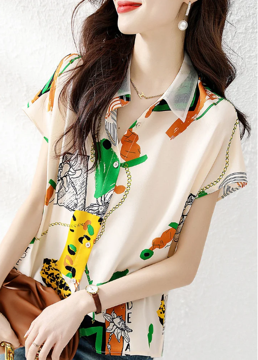 قميص شيفون أنيق بطبعة بياقة بيتر بان وأكمام قصيرة.