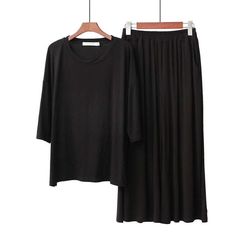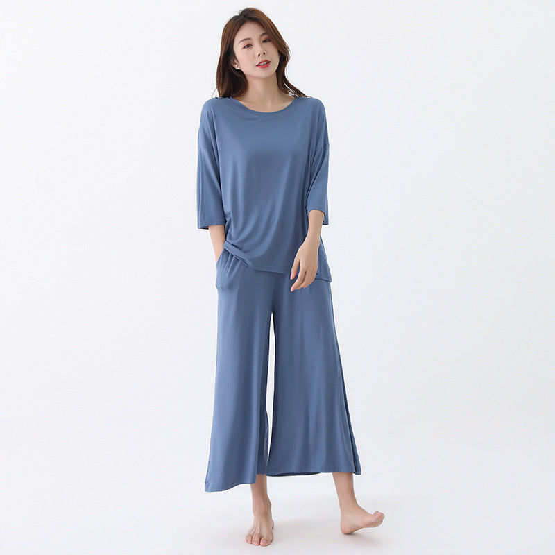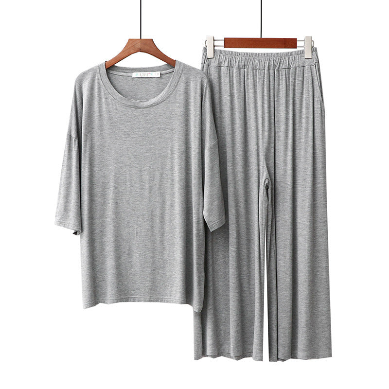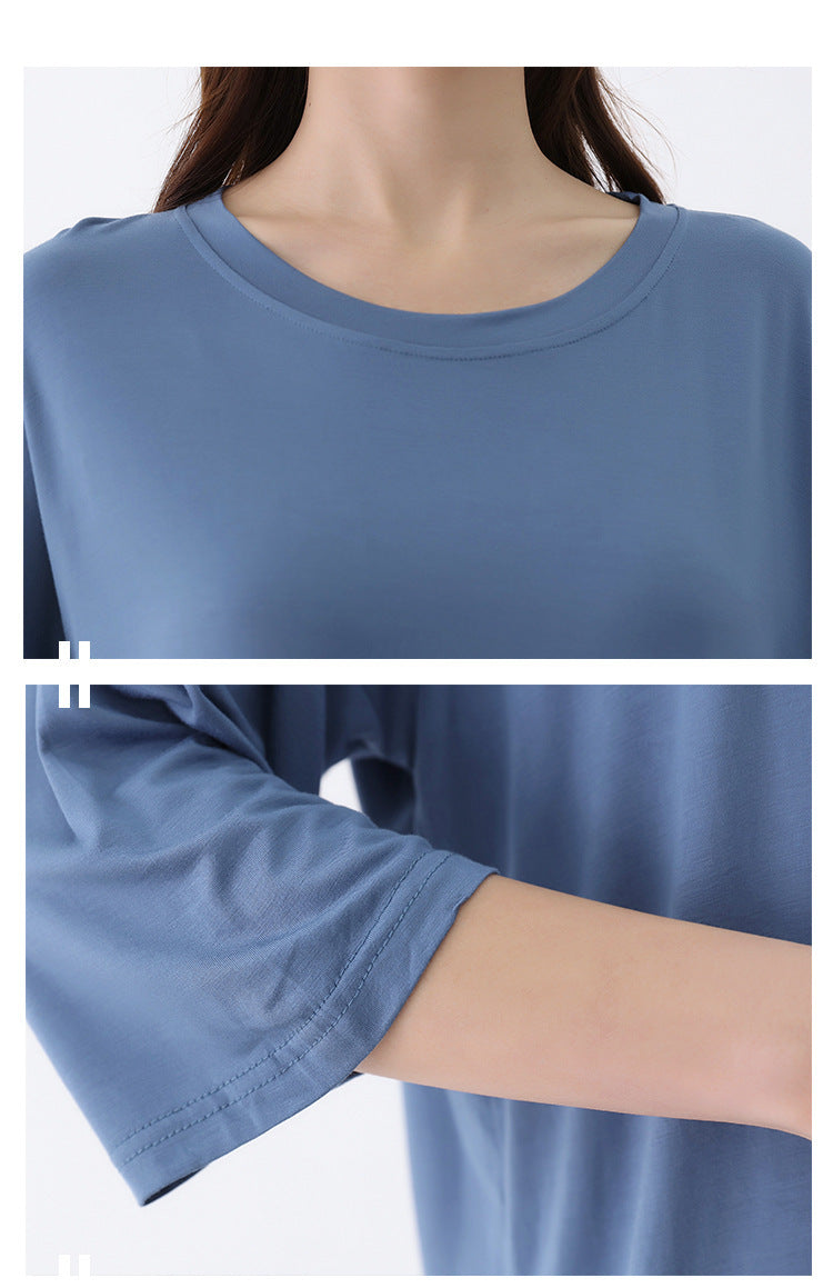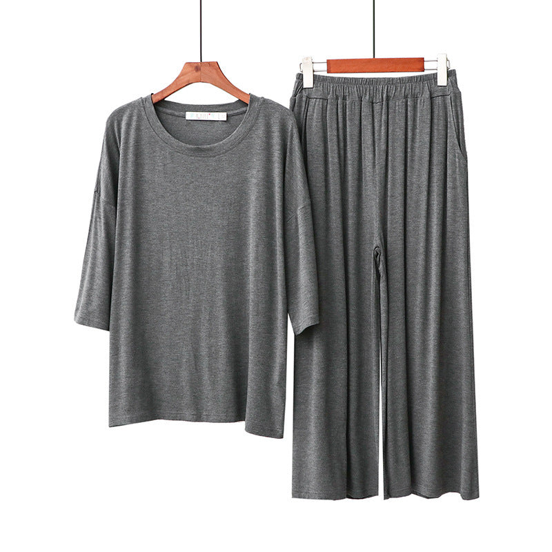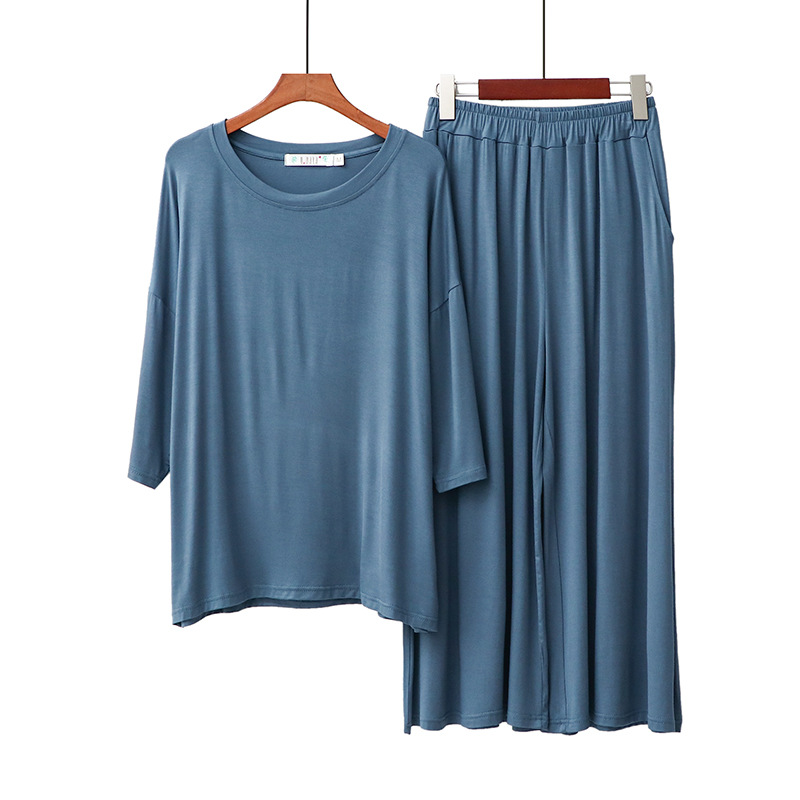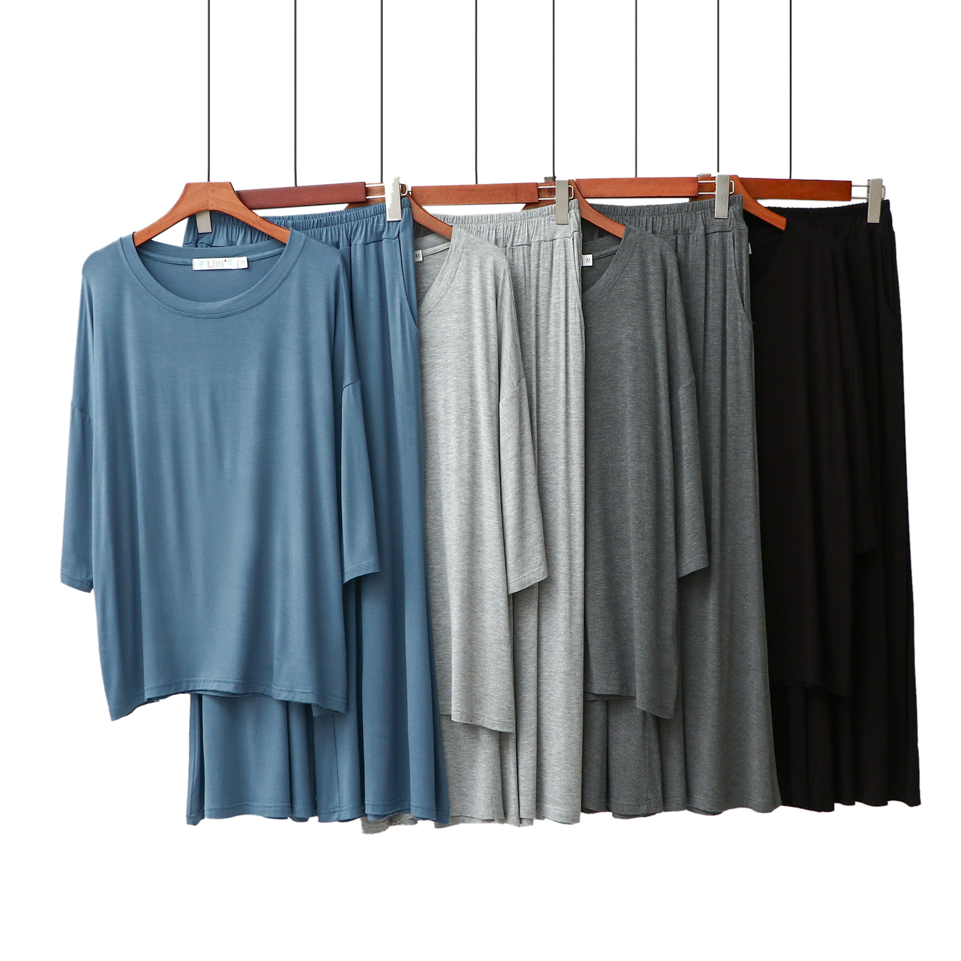 معلومات المنتج: اسم القماش: مودال النمط: بسيط وطبيعي النسيج: حياكة نوع الياقة: رقبة مستديرة طول الأكمام: أكمام ثلاثة أرباع طول البنطلون: بنطلون قصير اللون: 2170 رمادي فاتح، 2170 رمادي غامق، 2170 نيلي، 2170 أسود المقاس: M، L