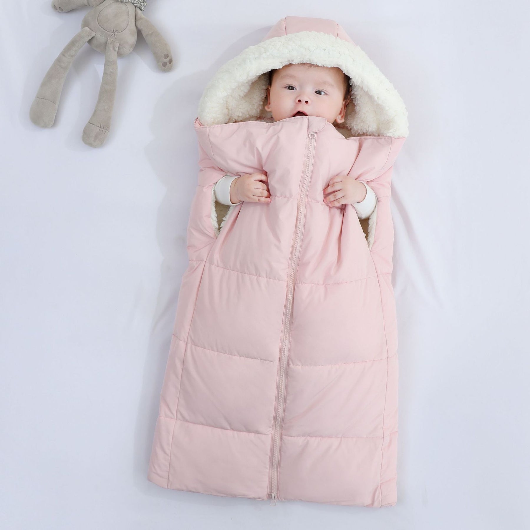 قماط حديثي الولادة دافئ وسميك بغطاء للرأس مناسب للخريف والشتاء
